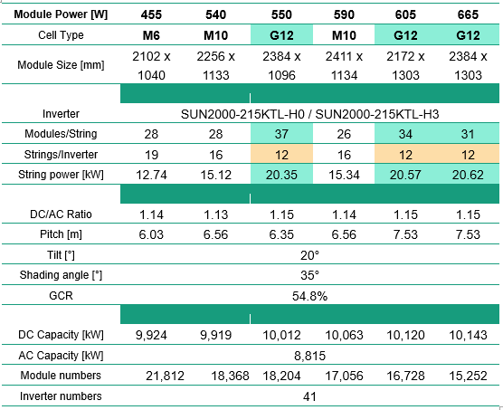 The study results show that the new generation of 210mm (G12) and 182mm (M10) modules performs better than the conventional 166mms (M6) modules in both CAPEX and LCOE, while the M10 540W mono-facial modules are superior to the M10 585W mono-facial modules.