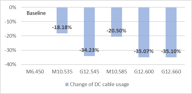 Figure XI: Comparison of the savings in DC cable usage between the new generation of high-power modules and conventional modules